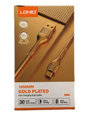 کابل LDNIO Gold Plated با طول ۱ متر، کانکتورهای طلایی مقاوم و پشتیبانی از شارژ سریع، گزینهای ایدهآل برای شارژ مطمئن و انتقال داده است.